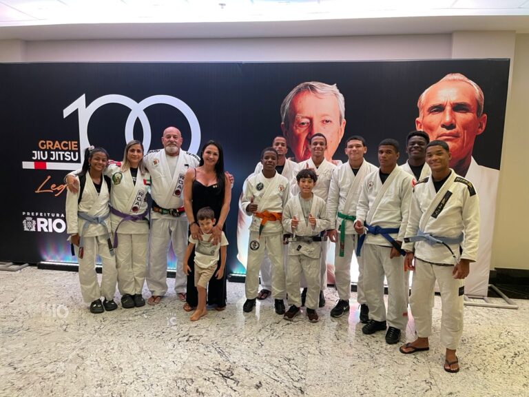 Os atletas do Projeto Jiu-Jitsu Para Todos Maricá, liderados pelo professor Marco Donato, faixa-preta da Renzo Gracie, e acompanhados pelo líder da Renzo Gracie Maricá, professor Niltinho, marcaram presença em um dos momentos mais emblemáticos da história do jiu-jitsu mundial a celebração dos 100 anos da Família Gracie, realizada neste fim de semana no Hotel Windsor, na Barra da Tijuca (RJ).