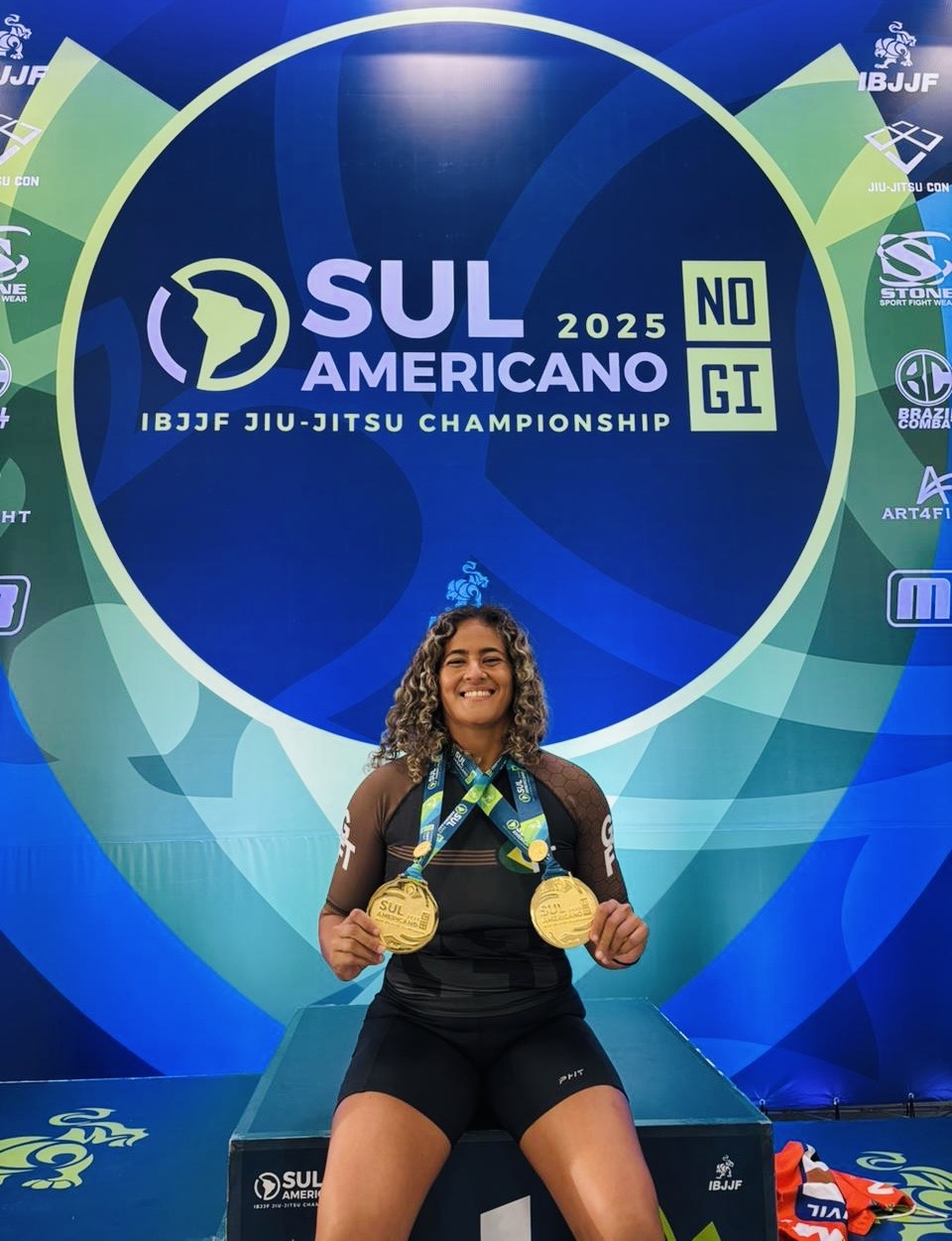 A Arena Carioca, na Barra da Tijuca, foi palco de grandes feitos no último fim de semana durante o Campeonato Sul-Americano No-Gi da IBJJF e o Campeonato Brasileiro Kids Sem Kimono, reunindo atletas de alto nível do jiu-jitsu. A equipe JCourt GFTeam Maricá se destacou com resultados expressivos em ambas as competições. No Sul-Americano, Luana Marinho foi o grande nome da delegação. Competindo na categoria pesado master 2, ela conquistou o ouro e, sem dar chances às adversárias, também venceu o absoluto, garantindo o cobiçado double gold e reafirmando seu lugar entre as melhores do continente. Outro destaque da equipe foi Rafael Leal, que mostrou técnica e determinação para alcançar o vice-campeonato sul-americano, consolidando sua posição entre os principais atletas de sua divisão. Enquanto isso, no Brasileiro Kids Sem Kimono, o jovem talento Andrew Luiz Teixeira, conhecido como Sansão, brilhou nos tatames e garantiu a medalha de bronze, demonstrando que o futuro da equipe está em ótimas mãos. Os resultados reforçam o trabalho consistente da JCourt GFTeam Maricá, que segue formando campeões e levando o nome da cidade a competições de nível nacional e internacional.