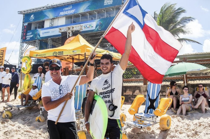 No sábado 12 atletas com deficiência já foram consagrados campeões e campeãs da Confederação Brasileira de Surf em Ipojuca O JISK apresenta Campeonato Brasileiro de Parasurf 2025 já consagrou 12 campeões e campeãs da Confederação Brasileira de Surf no sábado em Ipojuca, litoral sul de Pernambuco. Os outros 10 títulos nas diferentes categorias ou classes funcionais, em que foram divididos o número recorde de 52 atletas com deficiência de 10 estados do país, serão decididos neste domingo na Alameda do Surf na Praia do Borete, em Porto de Galinhas. O último dia vai começar mais cedo, às 7h00, com transmissão ao vivo no CBSurf.org.br pelo canal CBSurfPLAY no YouTube. No sábado, 12 surfistas já conquistaram seus troféus de melhor do Brasil em 2025, em 8 das 13 categorias do Parasurf da Confederação Brasileira de Surf. No PS-Kneel / Upright, das atletas que surfam de joelhos, a catarinense Vera Quaresma repetiu o título do ano passado, assim como a carioca pentacampeã Monique Oliveira no PS-Prone 2, de quem surfa deitado de bruços precisando de assistência para remar e subir na prancha. Os campeões destas duas categorias serão conhecidos no domingo do Campeonato Brasileiro apresentado por JISK. Algumas classes funcionais só tiveram um ou uma participante nesta terceira edição do evento no município do Ipojuca e ficaram com o título brasileiro. Foi assim para o gaúcho Paulo Souza no PS-Sit de quem compete sentado no waveski com remo, os catarinenses Figue Diel e Ingrid Medina na PS-VI 1 dos atletas com deficiência visual total, a pernambucana Lara Pino na Baixa Estatura, a cearense Ana Cordeiro na Autismo e os cariocas André Menezes e Aline Lopes na categoria Surdo. O título do PS-VI 2 dos atletas com deficiência visual parcial, só o masculino foi decidido no sábado e o catarinense Rafael Giguer se sagrou campeão. O pernambucano Roberto Pino conquistou o tetra na Baixa Estatura e o baiano João Lessa conseguiu o bicampeonato na Autismo, vencendo as duas baterias que disputaram no sábado. Os dois fizeram as melhores apresentações do dia, no mar difícil com forte correnteza e ondas de 3 pés com séries maiores na Praia do Borete. João Lessa mostrou um surf de borda muito forte, com suas rasgadas e laybacks arrancando notas 7,25, 7,00, 6,75 e 6,60 dos juízes. Com elas, ele fez os dois maiores somatórios do sábado em Ipojuca, 14,00 e 13,60 pontos. “Eu só queria chegar lá no fundo, escolher as melhores ondas, a rainha, para fazer duas boas notas no somatório”, disse João Lessa, campeão brasileiro de 2025 na categoria Autismo. “Eu procurei ondas pra usar a borda, fazer rasgadas com pressão e foi massa. Realizei meu sonho de ser campeão brasileiro e quero agradecer a Federação Baiana de Surf, meu treinador, meus pais que estão aqui e meus amigos, que estão vendo ao vivo e me apoiando. Agora é comemorar essa vitória tão importante, tão sonhada, que é o título brasileiro, e ano que vem vamos com tudo de novo”. ROBERTO PINO TETRACAMPEÃO BRASILEIRO NA CATEGORIA BAIXA ESTATURA O pernambucano Roberto Pino também fez duas grandes apresentações nas boas ondas da Praia do Borete. As duas baterias que ele disputou, foram contra o seu filho, Otávio Pino, que estava lesionado e não conseguiu surfar direito, mas compareceu para competir no Campeonato Brasileiro de Parasurf e se tornar vice-campeão de novo. Já o papai Roberto Pinodeu seu show de sempre e conseguiu notas 7,25 e 7,00 nas melhores ondas que surfou. Ele sacramentou o tetracampeonato brasileiro com 13,25 pontos na primeira bateria e 13,50 na segunda. “É muito gratificante mais uma conquista e quero agradecer minha família, que me dá um suporte maravilhoso e meus patrocinadores, porque sem eles eu não conseguiria ser tetracampeão brasileiro e bicampeão mundial”, destacou Roberto Pino. “As ondas estão incríveis, o mar melhorou bastante hoje e estou feliz demais de estar aqui competindo ao lado do meu filho. Ele, infelizmente, está com uma lesão no joelho e não pode mostrar seu surf. Esse campeonato aqui é da galera que gosta de viver. Mesmo com muita dificuldade na vida, a gente aqui supera tudo para realizar seus sonhos”. Roberto Pino também destacou o trabalho realizado por esta gestão da Confederação Brasileira de Surf, desde que Teco Padaratz foi eleito presidente em 2022, quando começou a acontecer os Campeonatos Brasileiros de Parasurf: “A cada ano que passa, tem recorde de atletas. Esse ano passou de 50 e estou em busca de mais gente pra competir na Baixa Estatura, junto com a CBSurf, com o Teco (Padaratz), o Geraldinho (Geraldo Cavalcanti, diretor executivo). Quero agradecer ao Geraldinho, a Brigitte (Mayer, vice-presidente) e toda a equipe da CBSurf pelo que vem fazendo. É um espetáculo esse evento, o melhor do planeta no Parasurf, muito melhor até do que o Mundial da ISA”. CATEGORIAS INCLUSIVAS DA CBSURF QUE NÃO TÊM NO MUNDIAL DA ISA A filha mais nova do Roberto Pino, a Lara, também colecionou mais um título brasileiro, mas apenas a família deles compete na Baixa Estatura, uma das categorias inclusivas que a CBSurf promove no Campeonato Brasileiro de Parasurf e não faz parte do Mundial da ISA. As outras são a Surdo vencida pelos cariocas André Menezes e Aline Lopes, a Down que será decidida no domingo e a Autismo que o baiano João Lessa ganhou e a cearense Ana Cordeiro repetiu seu título do ano passado. “A maré está mais cheia agora, as ondas com um bom tamanho, com bastante força e tem a dificuldade pra varar aquela correnteza ali, mas deu pra fazer um bom trabalho”, descreveu Ana Cordeiro, que falou sobre a iniciativa de inclusão promovida pela CBSurf. “O surf é um esporte muito inclusivo e o evento do Parasurf tá aqui pra provar isso, que todos nós podemos surfar, independente das limitações. O surf é um grande aliado na minha saúde mental e pro autista, é muito importante isso para a autoconfian
