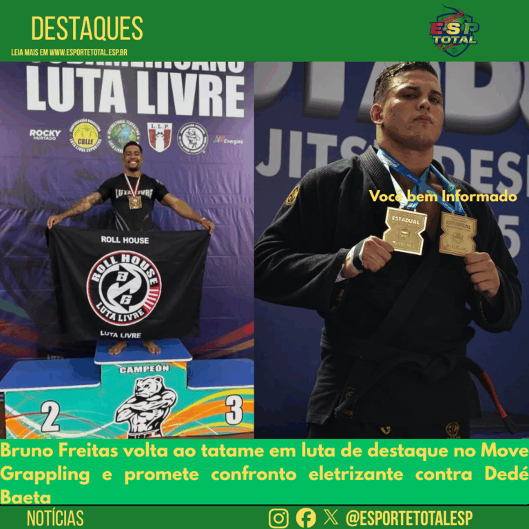 Do outro lado, Bruno Freitas chega embalado por uma campanha impecável. O representante de Maricá conquistou o título Sul-Americano de Luta Livre em Lima (Peru), reforçando não apenas sua evolução técnica, mas também sua confiança para enfrentar qualquer desafio no tatame. E mais: ele guarda na bagagem a vitória sobre Dedé Baeta no Brasileiro Sem Kimono, resultado que elevou ainda mais a expectativa para este reencontro.