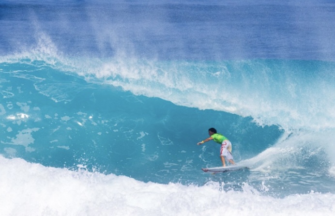 HEAT 6: Eli Hanneman (HAW) 14,14 DEF. Jacob Willcox (AUS) 10,17, Nolan Rapoza (EUA) 9,10, Jackson Baker (AUS) 2,14
