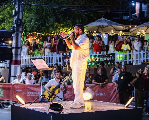 Maricá prepara uma noite especial para celebrar o Natal com música, cultura e emoção. No dia 25 de dezembro, a Orla de Araçatiba será palco de uma grande apresentação do sambista Dudu Nobre, atração principal da programação do Natal Brasilidade 2025, evento promovido pela Prefeitura de Maricá por meio da Companhia Maricá, Arte, Roteiros e Experiências (MARÉ). A partir das 20h, moradores e visitantes poderão acompanhar um espetáculo criado especialmente para a data, com repertório exclusivo que une clássicos do samba a canções com temática natalina. Reconhecido como um dos grandes nomes do samba carioca, Dudu Nobre promete um show marcado pela celebração da cultura brasileira e pelo clima de confraternização típico do Natal. Além da apresentação musical, a noite contará com atrações voltadas para toda a família. Um cortejo do Papai Noel dará início às atividades, seguido pela tradicional Parada de Natal, idealizada pelo carnavalesco e diretor artístico Milton Cunha. O desfile reúne seis carros alegóricos e cerca de 600 participantes da própria cidade, em um espetáculo que reconta a história do Natal a partir de referências da cultura nacional e das tradições de Maricá. Programação espalhada pela cidade O Natal Brasilidade 2025 acontece em sete bairros Araçatiba, Parque Nanci, Itaipuaçu, Flamengo, Ponta Negra, Centro e Camburi com uma agenda diversificada que inclui desfiles temáticos, iluminação especial, instalações interativas, pista de patinação no gelo, roda-gigante, Casas do Papai Noel e um parque temático no Parque Nanci. Neste ano, a cenografia do evento foi inspirada em elementos ligados à água, à pesca e ao artesanato local, valorizando a identidade cultural maricaense. O Parque Nanci recebeu um espaço lúdico que dialoga com a história da cidade e com o conceito do projeto. Às quintas-feiras, das 9h às 12h, o local funciona exclusivamente para alunos da rede municipal, com visitas guiadas integradas às ações sociais do Natal Brasilidade. Com atrações gratuitas e propostas para todas as idades, o evento reforça Maricá como um dos principais destinos de celebração natalina na região, unindo arte, tradição e participação popular.