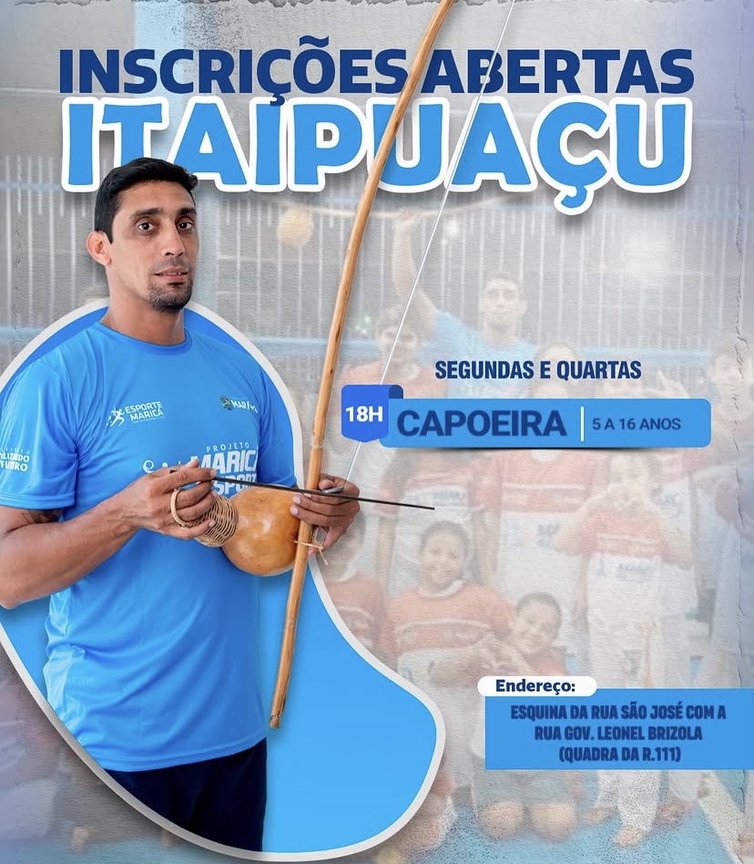 A tradição, a música e o movimento da capoeira agora fazem parte das atividades do projeto, que acaba de abrir inscrições para a nova modalidade voltada a crianças e adolescentes de 5 a 16 anos. As aulas serão realizadas às segundas e quartas-feiras, às 18h, na quadra localizada na esquina da Rua São José com a Rua Gov. Leonel Brizola (quadra da R.111). A iniciativa busca unir esporte, cultura e educação em uma prática que estimula disciplina, coordenação motora, respeito e trabalho em equipe. Mais do que uma atividade física, a capoeira representa uma importante expressão da cultura brasileira, promovendo inclusão social e desenvolvimento pessoal de forma dinâmica e divertida. Documentos necessários para inscrição: Cópia do RG e CPF do aluno. Cópia do RG e CPF do responsável (para menores de 18 anos). Cópia do comprovante de residência Declaração escolar (para menores de 18 anos). Atestado médico (se necessário). 1 foto 3×4 atual As vagas são limitadas. A organização orienta que os interessados garantam a inscrição o quanto antes para não perder essa oportunidade de aprender, crescer e se movimentar ao som do berimbau.