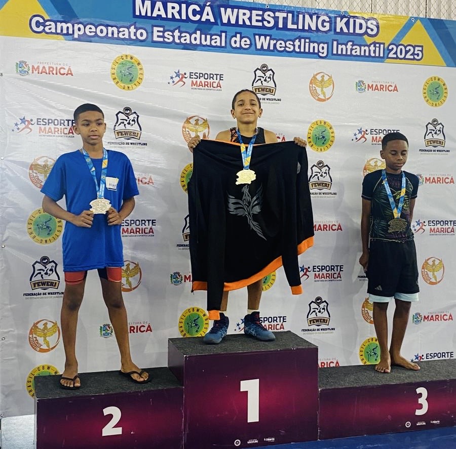 O jovem atleta Sansão, de apenas 11 anos, mostrou que o futuro do wrestling brasileiro está em boas mãos. Integrante da equipe Fênix Wrestling, o competidor é treinado pelas professoras Dailane Reise Fabiana, e teve uma atuação de destaque no Campeonato Estadual de Wrestling, realizado no último domingo (9) na Arena Flamengo, em Maricá. Sansão disputou três lutas, sendo duas no estilo livre e uma no Greco-Romano, demonstrando técnica, foco e determinação. Com um desempenho impecável, o jovem talento venceu todas as suas lutas por encostamento, garantindo um resultado expressivo e reforçando sua posição como uma das grandes promessas da modalidade. Além do wrestling, Sansão também se dedica ao jiu-jitsu, onde continua evoluindo sob a orientação dos mestres Jair Court, Samara, Rafael Leal e Roberio Souza da Luta-Livre Esportiva a quem ele faz questão de agradecer pelo apoio constante. O atleta também destacou a importância do incentivo fora dos tatames: “Quero agradecer à loja Novo Lare e ao meu barbeiro Guilherme por todo o apoio. Cada gesto faz diferença nessa caminhada”, disse o jovem campeão, emocionado. Com disciplina e paixão pelo esporte, Sansão segue representando Maricá com orgulho, inspirando outras crianças a acreditarem nos seus sonhos através do esporte.