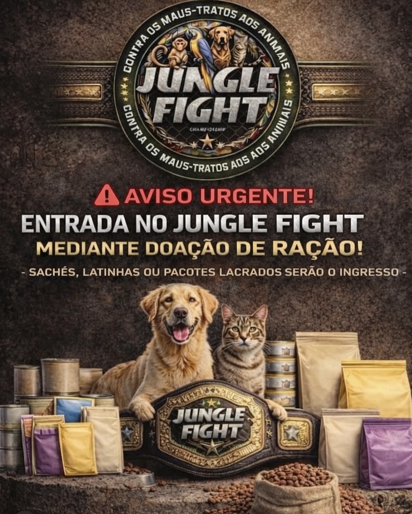 Neste sábado (28), o maior evento de MMA da América Latina promete ir além das emoções dentro do octógono. O Jungle Fight chega a São Paulo com uma iniciativa que une esporte e responsabilidade social: a entrada solidária será a doação de alimentos para animais em situação de vulnerabilidade. A edição acontece na Mercado Livre Arena Pacaembu, a partir das 20h, com transmissão ao vivo pelos canais SporTV e Combate. O público poderá garantir presença gratuita no evento, bastando levar itens como ração lacrada, sachês ou latinhas de alimento para cães e gatos. A ação reforça que, no Jungle Fight, a luta não acontece apenas dentro da arena. A proposta é mobilizar atletas, fãs e toda a comunidade para uma causa maior: ajudar animais abandonados ou resgatados que dependem de doações para sobreviver. Com o lema “lute por quem não pode se defender”, o evento busca conscientizar sobre a importância do combate aos maus-tratos e do cuidado com os animais. A expectativa é arrecadar uma grande quantidade de alimentos, que serão destinados a instituições e protetores independentes. Além de acompanhar combates eletrizantes e grandes nomes do MMA nacional, o público terá a oportunidade de fazer a diferença na vida de centenas de animais. Uma noite de esporte, emoção e solidariedade que promete marcar mais um capítulo importante na história do Jungle Fight.
