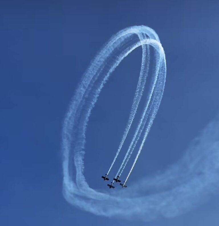 As apresentações seguem até domingo (14/12), sempre às 17h, oferecendo ao público cerca de 20 minutos de pura emoção. No ar, quatro aeronaves executam figuras como loopings, rasantes, trevos e desenhos simbólicos, criando uma coreografia aérea que mistura técnica, arte e sensibilidade.