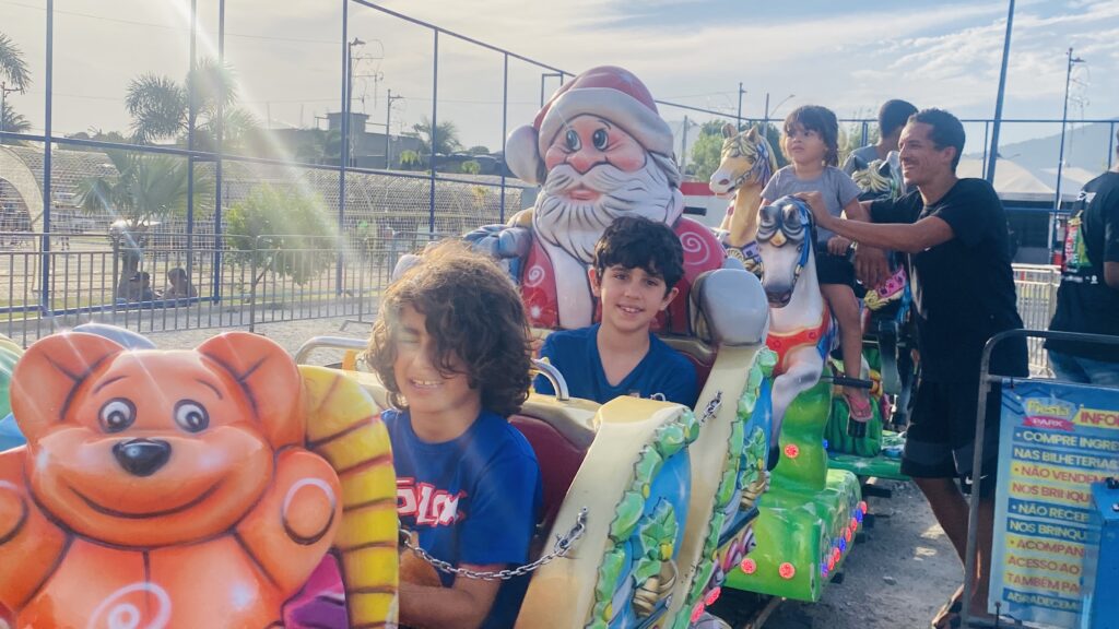A professora Júlia Souza, que está se mudando de Macaé para Maricá, aproveitou a tarde para conhecer de perto as atrações que havia visto apenas pelas redes sociais. Para ela, o destaque vai além dos brinquedos. “A decoração é linda e o ambiente é muito acolhedor. Esse clima familiar faz toda a diferença e mostra o cuidado da cidade com as pessoas”, comentou.