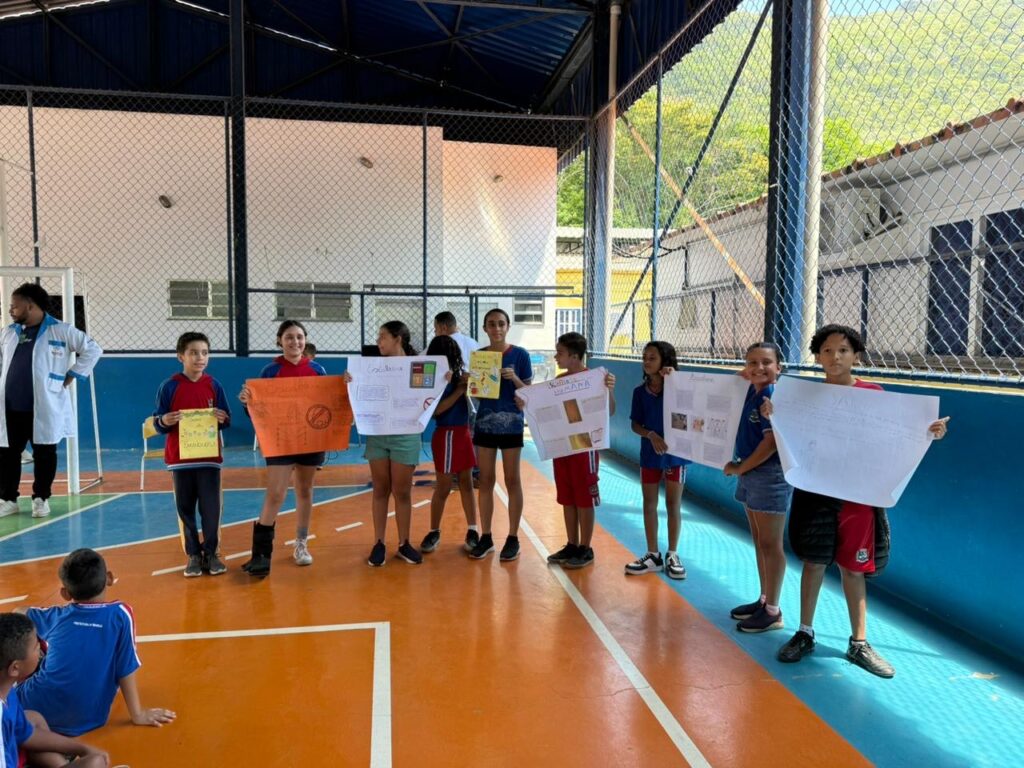 Durante a atividade, estudantes do 5º ano também apresentaram trabalhos feitos nas aulas de Ciências, nos quais explicaram o que aprenderam sobre o ácaro transmissor, sua forma de contágio e os cuidados de higiene indispensáveis.