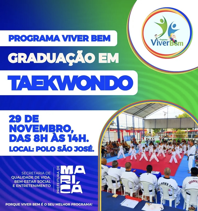 Sábado (29) promete ser de emoção e conquistas no Polo São José, em Maricá. Atletas do Taekwondo que integram o Programa Viver Bem participam da cerimônia de graduação, um dos momentos mais aguardados do ano, simbolizando evolução técnica, maturidade esportiva e muito comprometimento.