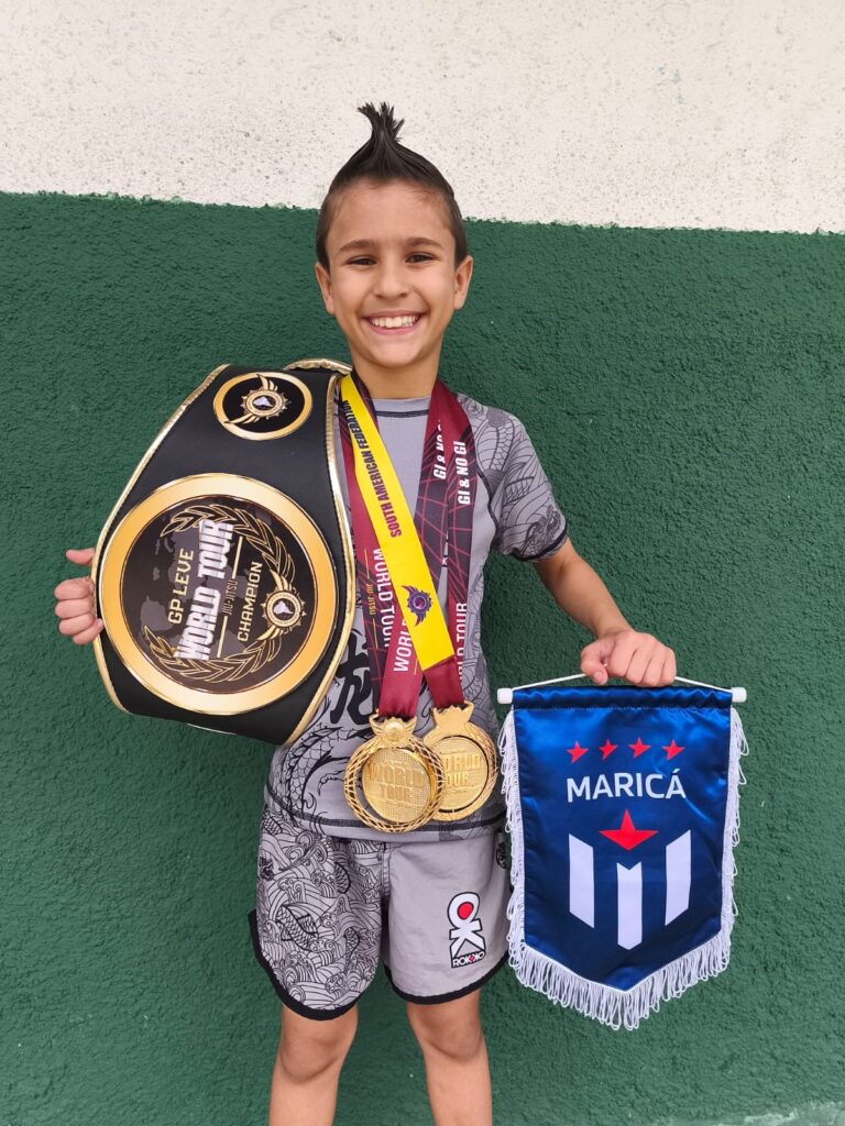 O jiu-jitsu de Maricá ganhou mais um motivo para comemorar neste fim de novembro. O jovem talento Pedro Estelita, de apenas 8 anos, voltou a fazer história nos tatames ao conquistar mais um ouro para a cidade. No último fim de semana, o atleta participou do World Tour da SPORT JIU-JITSU SOUTH AMERICAN FEDERATION (SJJSAF), realizado em Teresópolis, e sagrou-se campeão de sua categoria, vencendo todas as lutas por finalização.